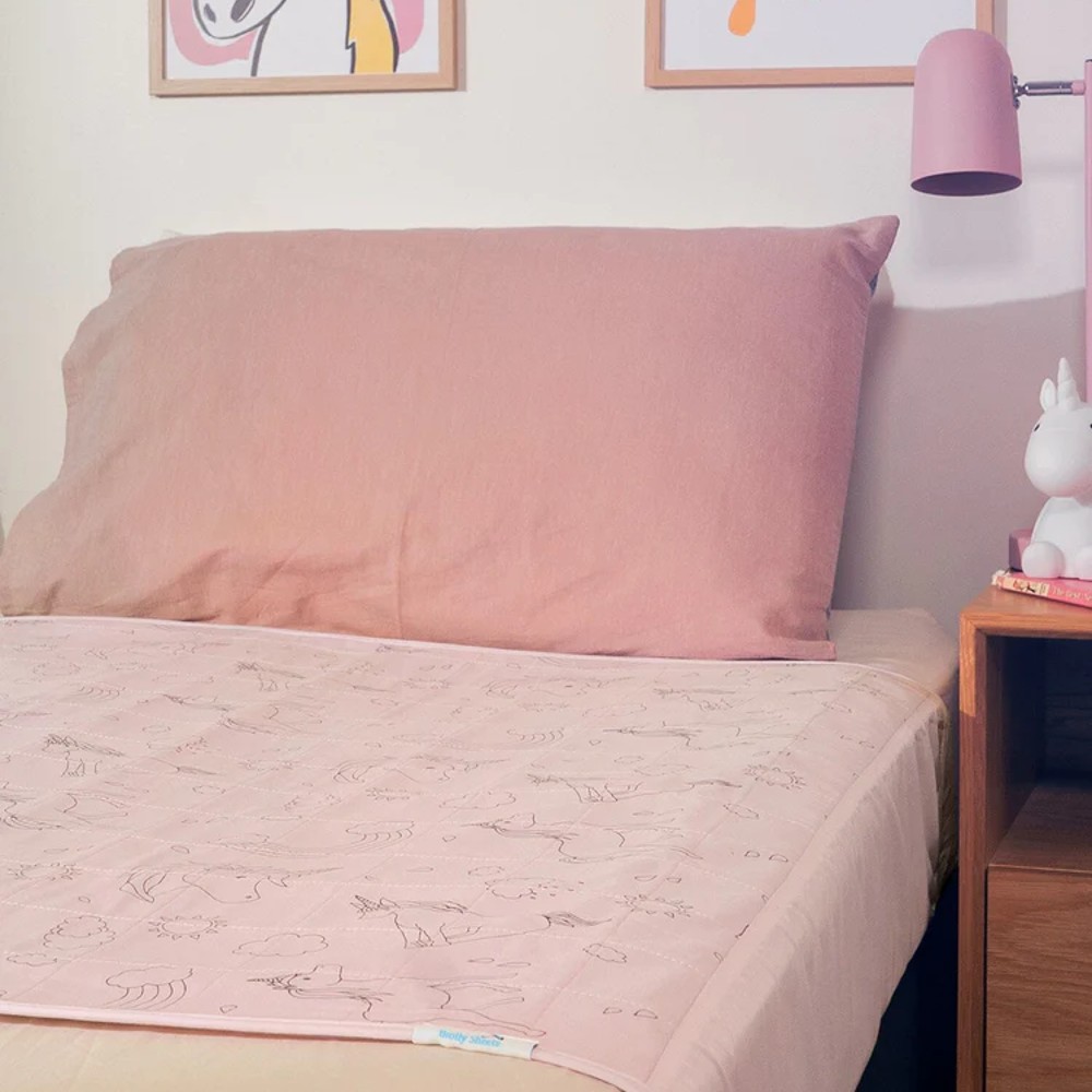 Your child sleeps on the 100% cotton, comfy top whilst the middle layer and waterproof backing keeps the bottom sheet & mattress dry.  Older children can easily change a Brolly Sheet for themselves, which gives them independence and dignity when dealing with bed-wetting - and more sleep for Mum and Dad!