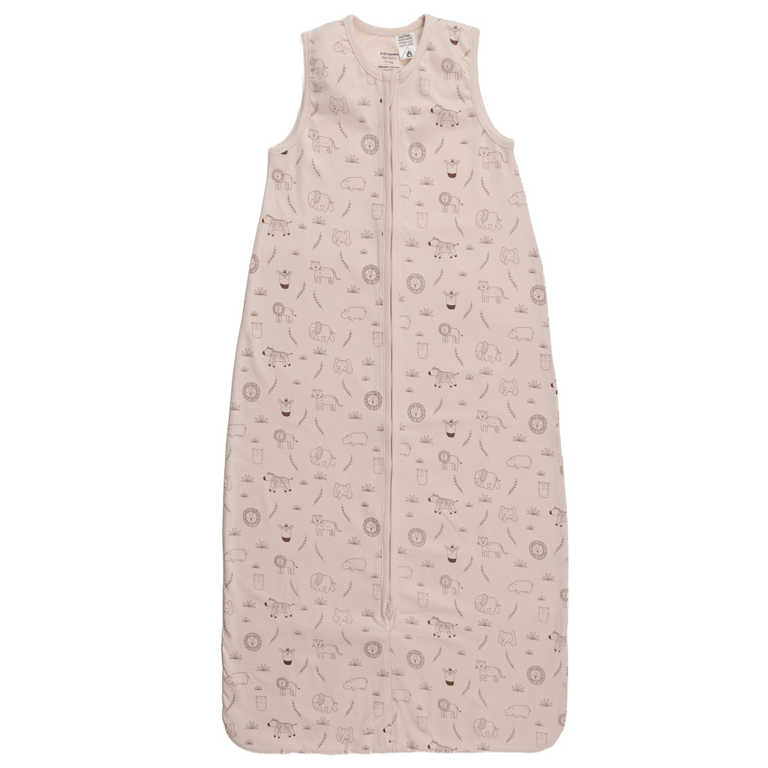 This sleeping bag is 100% cotton. Has a side zip opening and available in sizes 0-6m, 6-18m and 18-36m in 3 cute prints.