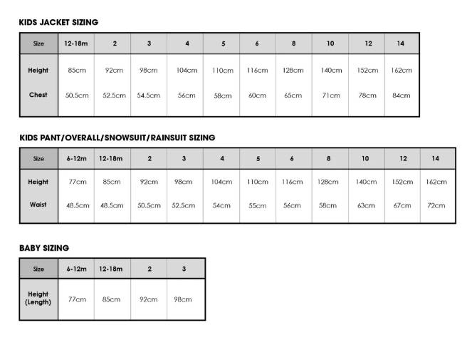Sizing Chart