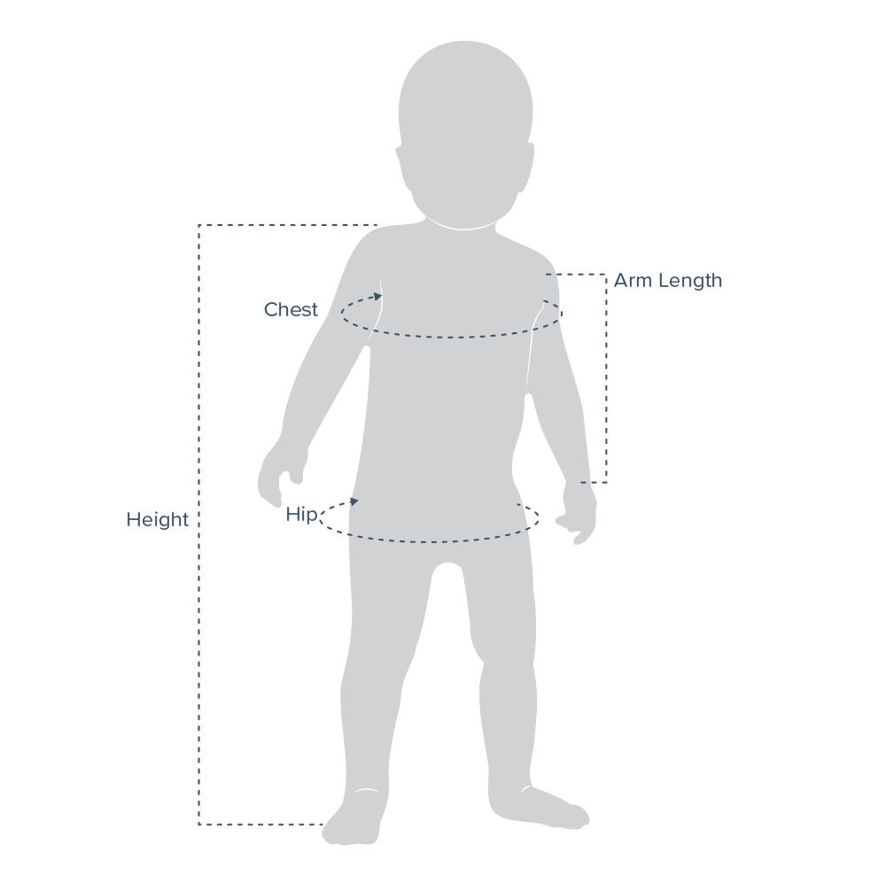 | Size | Height/Length | Chest | Arm | Hip | Inside Leg |